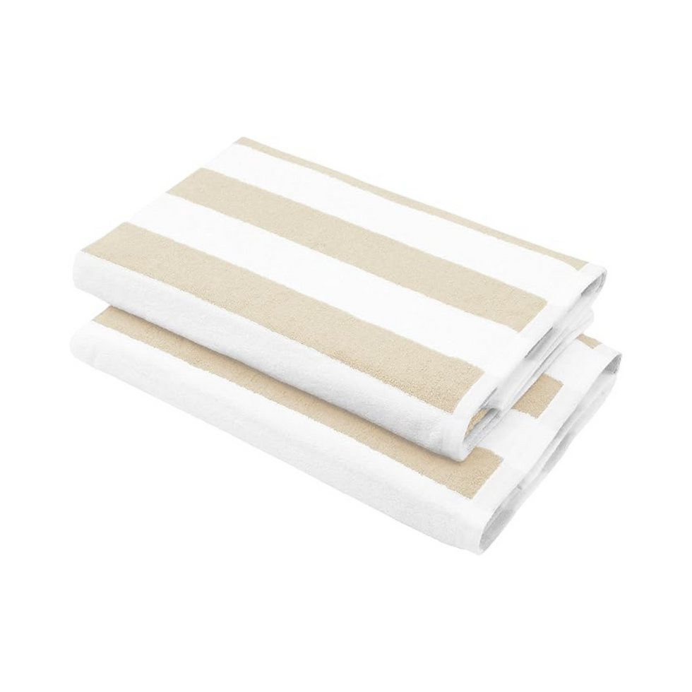 Set de 2 serviettes douces beiges 100% coton et résistante.
